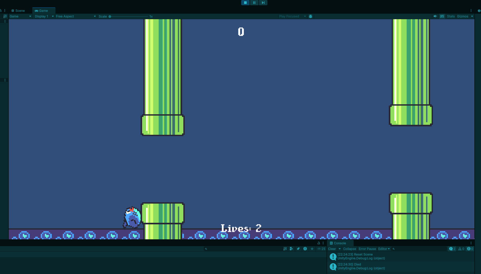 This is the project I made for my CITA 212 class made in unity. For that class I made a (rip off) flappy bird inspired game where you press space to jump, and you dodge the pipes that travel towards you. I (uncreativly) changed it to be a fish underwater and called it swimmy fishy. The fish rapidly spinnging started as a bug, but was pretty funny and was told by other classmates I should keep it to make it a btit funnier, so rapidly spinning fish and a feature of the game.